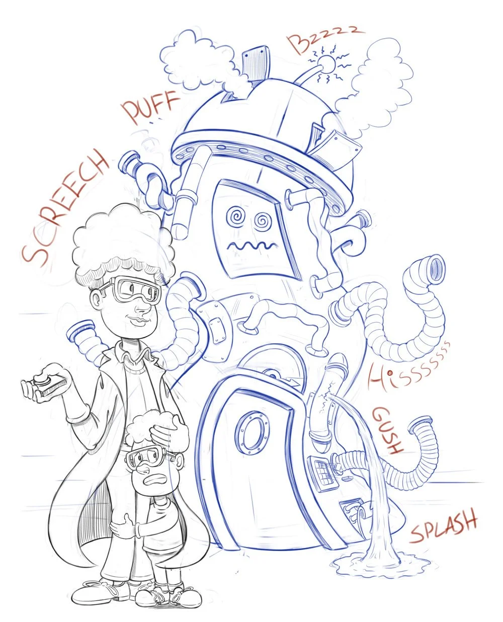 « Pagaille Temporelle Fois Deux » est un album illustré qui raconte l’histoire de Charlie, un jeune garçon chargé d’écrire une rédaction sur la vie d’un membre de sa famille. Lorsqu’il rejette l’idée d’écrire sur sa grand-mère, qu’il juge « affreusement ennuyeuse », sa mère lui propose de rencontrer une ancêtre venue d’un passé lointain. Grâce à la machine à voyager dans le temps que sa maman vient d’inventer, ils font revenir non pas une, mais deux aïeules de Charlie.